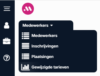 - Medewerkers: hier zie je een overzicht van al je medewerkers. Selecteer een medewerker om deze opnieuw in te schrijven, of een extra plaatsing aan te maken.